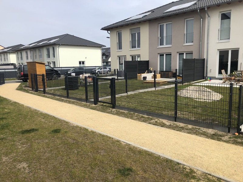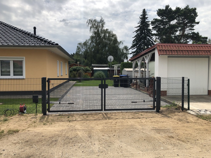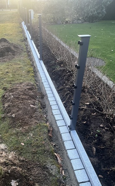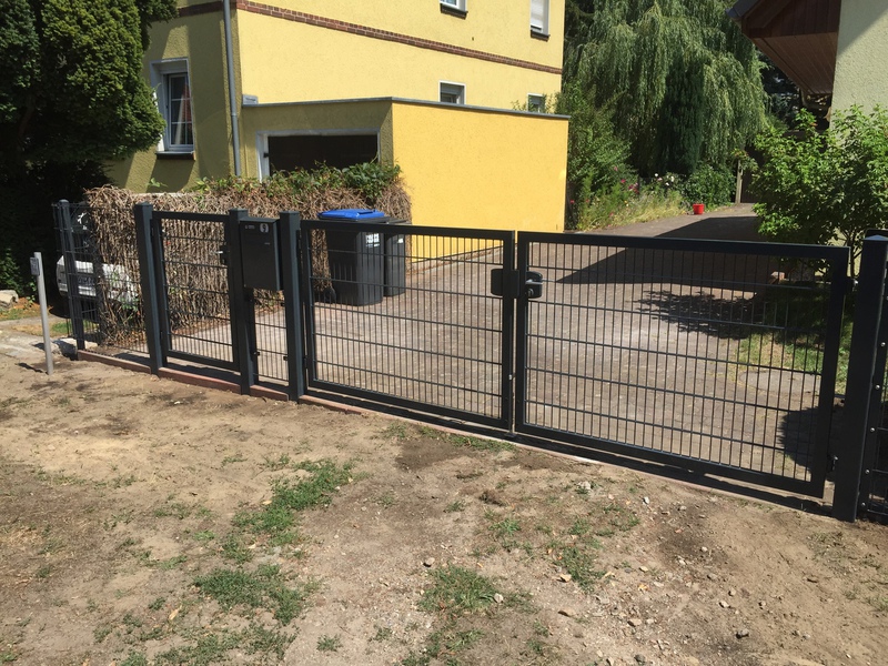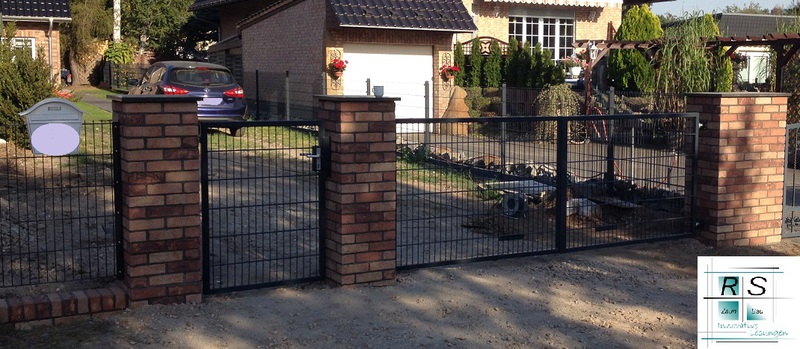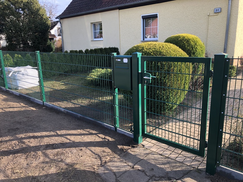 Einzäunungen aus Doppelstabmatten, mit oder ohne Torantrieb. Wenn gewünscht, mit Zusatzausstattungen wie z.B.Briefkasten oder Kantensteinen in sämtlichen Variationen.